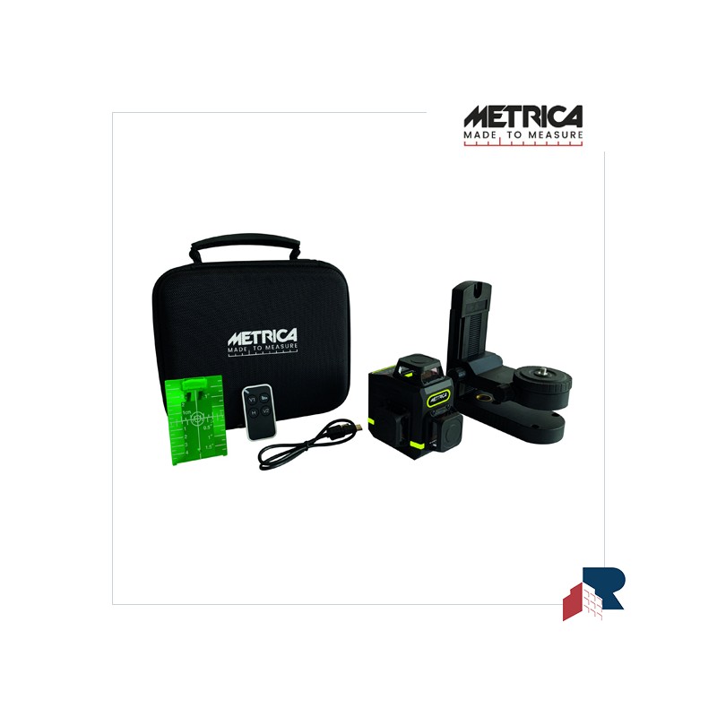 Livello laser a 3 dimensioni colore VERDE, portata 30 metri, classe II, IP54, autolivellante, proiezione a 360° dei 3 livelli. Dotato di batteria al litio ricaricabile, batteria di ricambio, cavetto di ricarica, supporto magnetico a parete. Dimensioni 140x160x85 mm peso 650 gr.